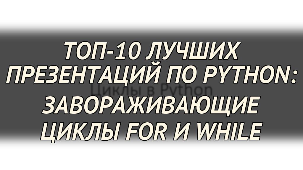В этой статье мы собрали ТОП-10 лучших презентаций, посвященных циклам for и while в Python, тщательно отобранных по критериям ясности, интерактивности и актуальности. Каждая презентация оценивается на предмет наглядности примеров, экспертного уровня спикеров и потенциала для практического применения, чтобы вы могли выбрать материал, идеально подходящий для вашего уровня подготовки и целей обучения.