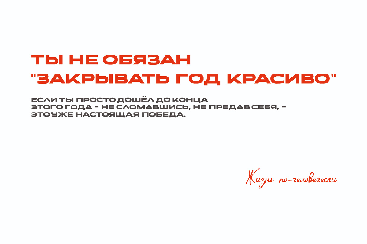 Никто не обязывает тебя закрывать этот год красиво. Иногда достаточно - просто дойти до конца Мы все, уже давно превратили декабрь в экзаменационный период. В нём нам нужно держать отчетность за: