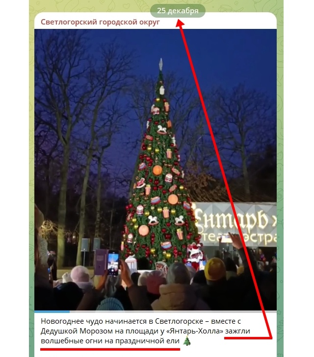 Как в народном понимании можно назвать сегодняшнее мероприятие светлогорской администрации "Новогоднее чудо начинается в Светлогорске"? * * * На картинке показан скриншот с официального канала администрации Светлогорского городского округа. Там выложен отчет о проведении новогоднего мероприятия по включению "волшебных огней на праздничной ели" 25 декабря 2025 года. Вроде бы, нет ничего такого особенного. Да, но это если не знать что было раньше, до указанного мероприятия. * * * Дело в том, что иллюминация... Ага, те самые "волшебные огни" на этой городской праздничной елке были ВКЛЮЧЕНЫ уже давно, более 10 дней назад. Фото с елкой размещено 13.12.2025 на этом же моем дзен-канале: https://dzen.ru/a/aTytB3g3DUMygg0t?share_to=link * * * Вот такое чудесатое "новогоднее чудо" 25 декабря организовала светлогорская администрация. Это та самая администрация, которая заявила что 31 декабря никаких новогодних мероприятий в курортном Светлогорске не будет. И еще раз для тех, кто ничего не понял