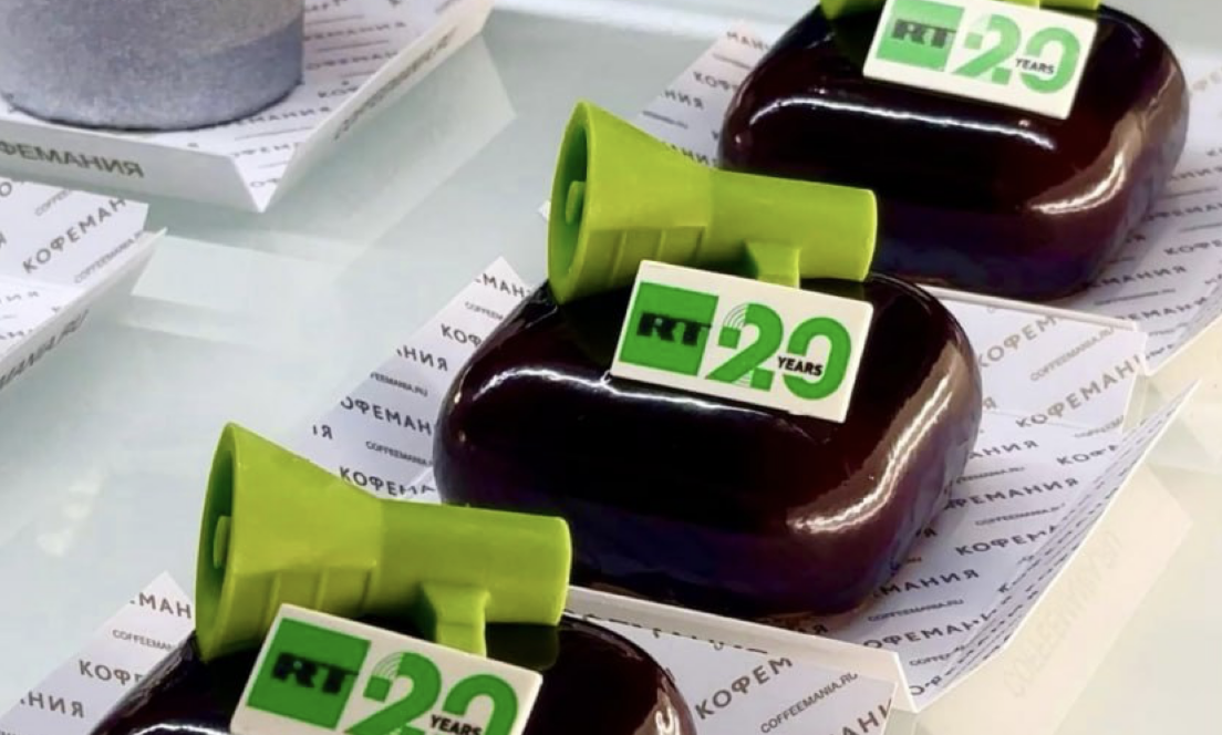 В сети ресторанов Кофемания появился новый фирменный десерт — десеRT, созданный в честь 20-летия телеканала RT