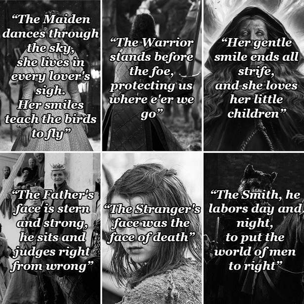 А что насчет остального? Если он связывает членов Семи с домом Старков и раскрывает будущие события с помощью этого текста, что еще мы можем извлечь? Почему он остановился на Отце, Матери и Кузнеце?