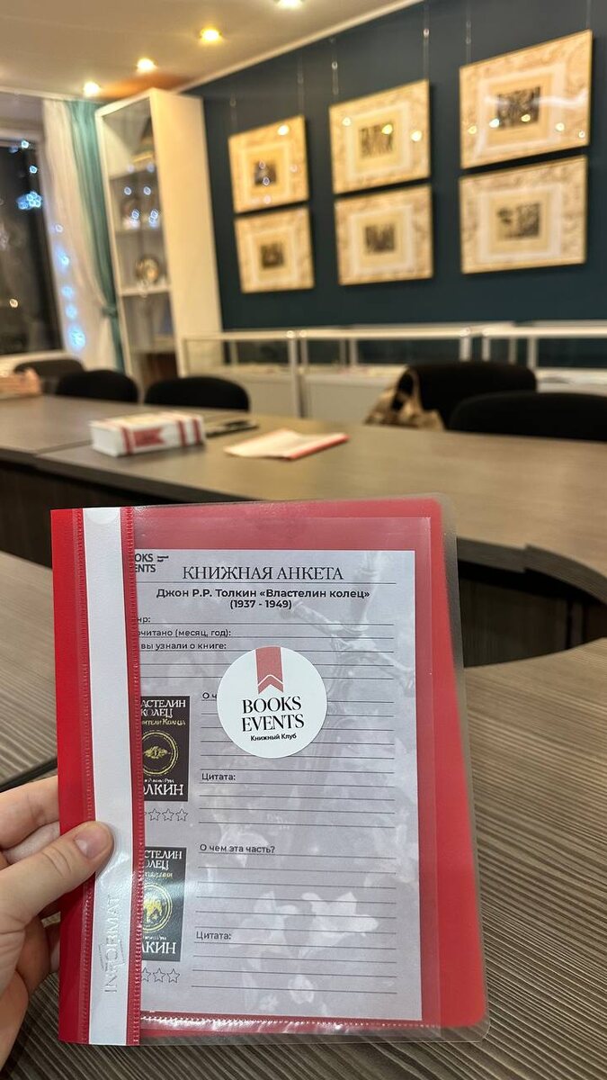 BOOK EVENTS https://t.me/booksevents Мы обсудили все намеченные вопросы и поделились мыслями после прочтения обозначенной книги. Впервые была на таком мероприятие и мне понравилось. Во-первых: знакомство с новыми людьми. Во-вторых: узнать новое и услышать иное мнение. В-третьих: открыть для себя новое занятие. В эту встречу мы делились мыслями по одной из частей «Властелина колец». И, да, книг не три☺️
