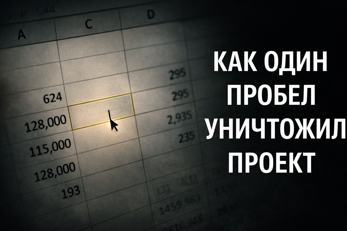 Реальная история о том, как незаметный пробел в Excel привёл к ошибкам, срыву сроков и потере доверия. Практика защиты. Чек-лист «20 скрытых ошибок Excel» Проект шёл ровно. Отчёты сходились. Формулы считали. Дедлайн был под контролем. Ровно до того момента, пока одна цифра не перестала находиться. Не ошибка. Не #VALUE. Просто пусто. Поиск не находил значение. VLOOKUP возвращал пустоту. Сводная вела себя странно. Самое опасное — Excel не ругался. Он молчал. Один. Невидимый. В конце ячейки. Данные выглядели одинаково. Но одинаковыми не были. Именно из-за этого: Пробел: Он просто портит данные тихо. И именно такие ошибки: Это не «кривые руки». Это отсутствие проверки. Excel не обязан догадываться, что ты имел в виду. Не глазами.