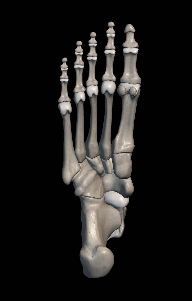 Давайте погрузимся в мир анатомии стопы — этой сложной и продуманной конструкции, которая ежедневно выдерживает колоссальные нагрузки. Чтобы понять, как она работает, начнём с изучения её костного каркаса. Основой служит пяточная кость — самая крупная в стопе. Сверху она соединяется с таранной костью, которая играет ключевую роль в формировании голеностопного сустава вместе с большеберцовой и малоберцовой костями. Примечательно, что к таранной кости не прикрепляется ни одно сухожилие. Она словно находится в «заложниках» между сухожилиями мышц, спускающихся от голени. Если в каком‑либо направлении сухожилие ослабевает, может произойти смещение таранной кости. Это чревато нарушением амортизационной функции стопы и неправильным распределением нагрузки. Пяточная кость также соединяется с другими костями: с кубовидной — с латеральной стороны, с ладьевидной — с медиальной. Вместе с таранной костью они формируют задний отдел стопы, или предплюсный отдел. К нему же относятся три клиновидные к