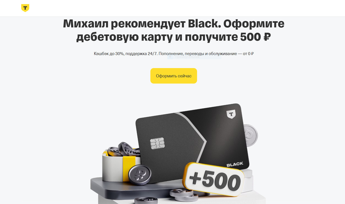 В АО "Т-Банк" проходит акция "Приведи друга" с рекомендацией дебетовой карты Black. Если Вы ранее не являлись клиентом АО Т-Банк - Вы можете оформить карту по ссылке tbank.ru/baf/7WoCjM0mz6N - получив за оформление 500,00 рублей и бесплатное обслуживание навсегда, при выполнении следующих условий:
