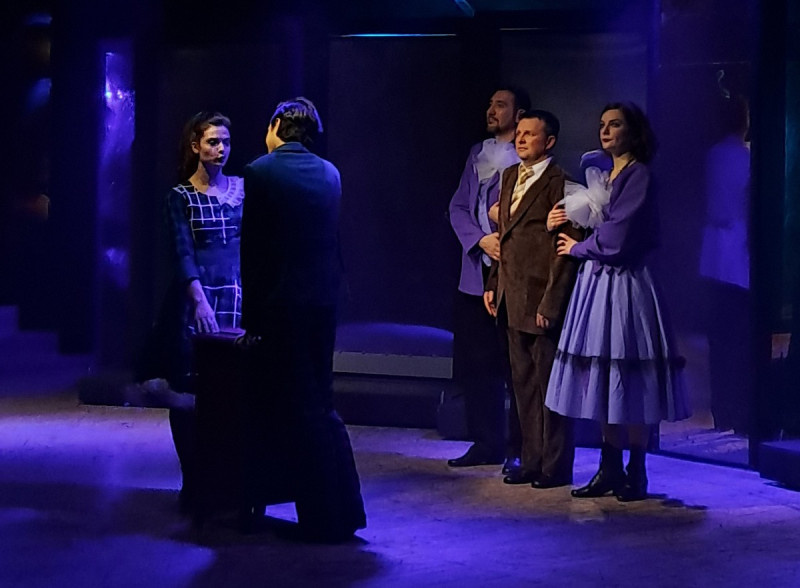 Москва, пятидесятые, коммунальная квартира в доме недалеко от Покровских ворот — эта атмосфера прекрасно ощущалась в Театре на Юго-Западе в новой постановке Олега Леушина. К советскому фильму я равнодушна, поэтому шла на спектакль без ожиданий. Непривычно было видеть на сцене актера театра Сатиры Сергея Климова, именно его выбрал режиссер на роль Хоботова. И попадание было стопроцентным. Его возлюбленная Людочка — чудесная Елена Лунцова. Их пара смотрится очень гармонично, вопреки всем стараниям Маргариты Павловны (Ксения Ефремова). Совершенно очаровательный Костик — Егор Кучкаров. Он так искренне помогал Хоботову обрести своё счастье. А когда он видит девушку своей мечты — это было прекрасно! Маргарита Павловна совершенно очаровательна в своих сложных отношениях сразу с двумя мужчинами, она выходит замуж, но при этом не прекращает опеку над бывшим мужем. Её забота не имеет границ и временами выглядит пугающей. Ксения Ефремова очень убедительна в этом образе, я в восхищении! Постановка