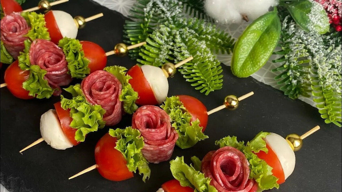 Для кулинаров-новичков отлично подойдут канапе: используйте сочетание моцареллы, помидоров черри и базилика, или карбонад с вялеными томатами и соусом, а также сыр с виноградом. Не забудьте про