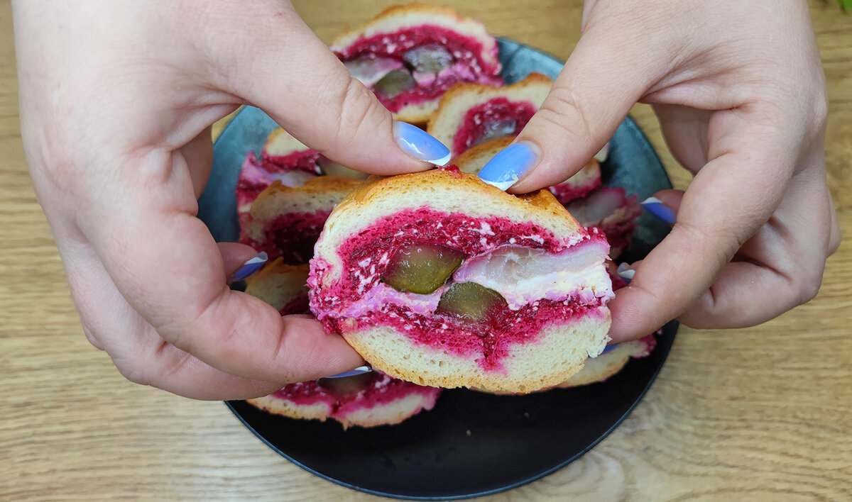 Здравствуйте, мои хорошие! Есть такие рецепты, которые вроде бы простые до смешного, а на столе выглядят так, будто над ними колдовали полдня. Особенно это актуально перед Новым годом, когда хочется удивить гостей, но при этом не жить на кухне. Вот сегодня как раз такой вариант — закуска из свеклы и сельди, которая делается из самых обычных продуктов, а результат получается нарядный, яркий и очень праздничный. У меня этот рулетик давно стал выручалочкой. Делается заранее, спокойно ждёт своего часа в холодильнике, а перед подачей остаётся только красиво нарезать. И, честно скажу, тарелка с ним всегда пустеет первой. Сочетание свеклы, сельди, яйца и нежного сливочного слоя — классика, проверенная временем, но подача совсем не банальная. Ингредиенты: Как приготовить: 1. Начнём с багета. Для этого рецепта лучше брать не совсем свежий, а вчерашний или даже позавчерашний. Такой багет легче поддаётся и не крошится. Срезаем у него корочки по всей длине, чтобы осталась мягкая серединка. 2. Тепе