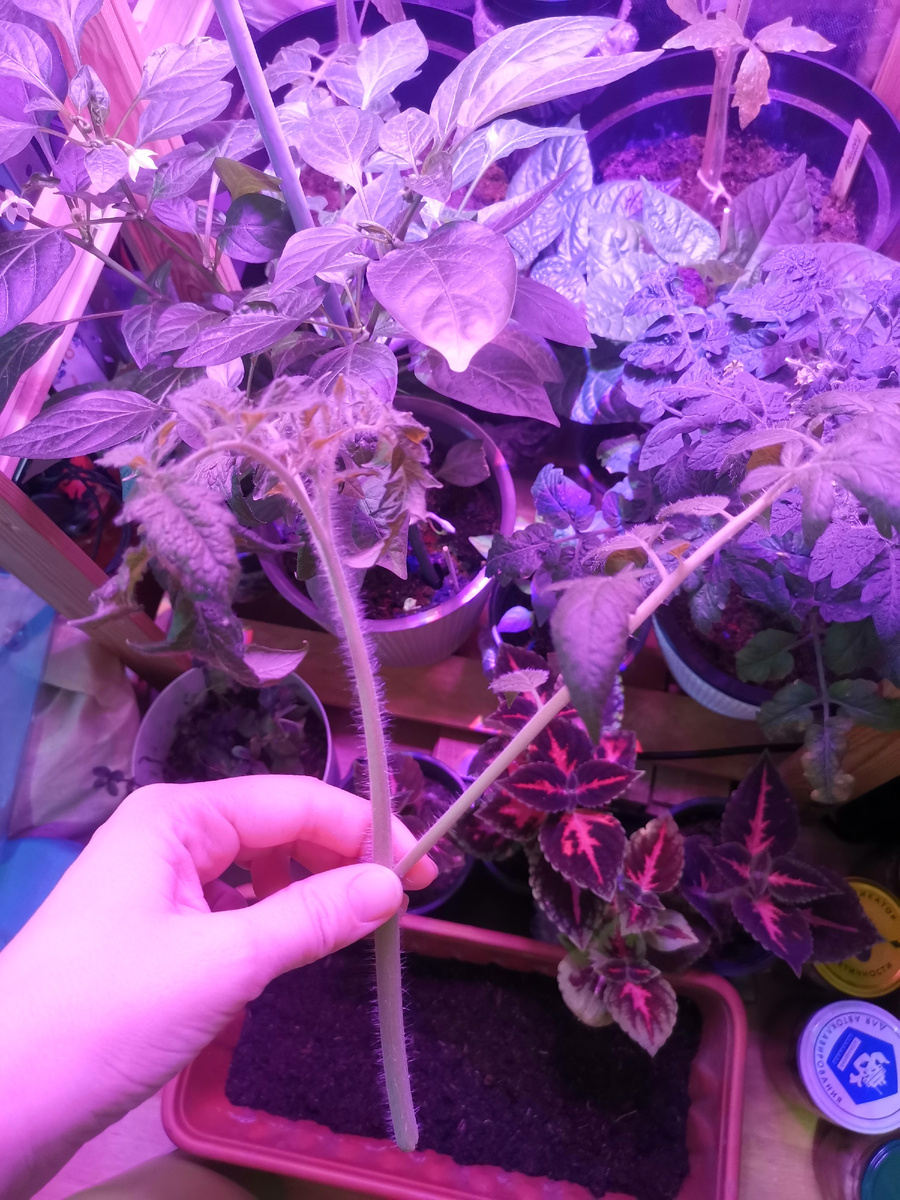 Эксперимент по выращиванию НЕ горшечных томатов в горшках продолжается. Я обрезала высокий куст, не стала ждать, когда он у меня упрётся в лампы окончательно.