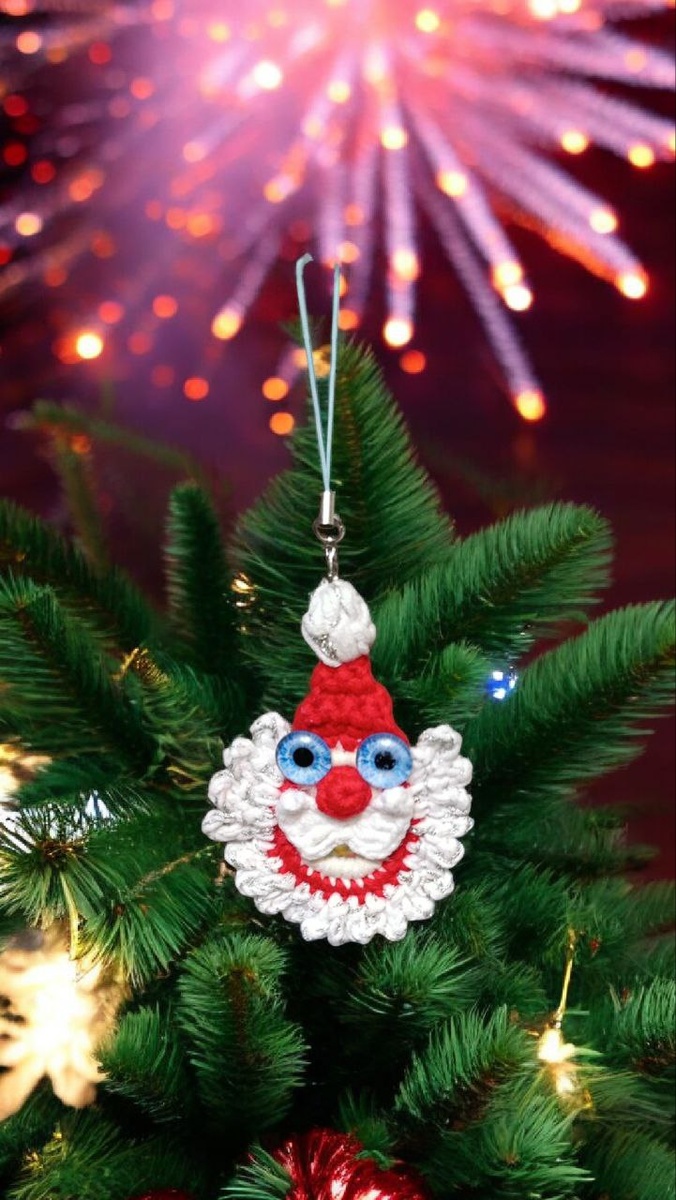 » ✨ Готова показать моего праздничного Деда Мороза – маленький брелок-игрушку для ёлки. Это яркий и забавный аксессуар, который сразу создаёт новогоднее настроение. 🌲 Описание игрушки - Связан в виде улыбающегося Деда Мороза с пышной белой бородой и красной шапочкой. - Игрушка оформлена как брелок: есть петелька и фурнитура, чтобы повесить на ёлку, ключи или сумку. - Яркие глазки и красный нос делают образ особенно милым и праздничным. 🌲Как использовать - Можно повесить на новогоднюю ёлку вместо обычного шара и добавить интерьеру уюта. - Подойдёт как небольшой подарок к Новому году для друзей, коллег или родных. - Удобный формат брелока позволяет носить Деда Мороза с собой и не расставаться с праздничным настроением. 🎄 Идея для рукодельниц - Отличный вариант для любителей вязания и креативного декора: можно связать целую серию таких Дедов Морозов в разных цветах. - Подходит для новогодних ярмарок, подарочных наборов и фотосессий в стиле hand-made.