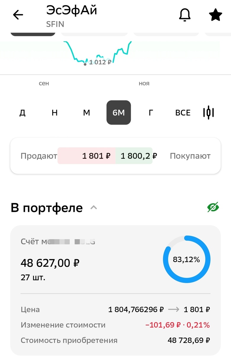 Я до сих пор жалею, что не заскринила стакан. Но там цена покупки была и 1828 и 2000, но в средем 1800-1700, цена продажи почему то сразу минимальная высиавилась 600 р