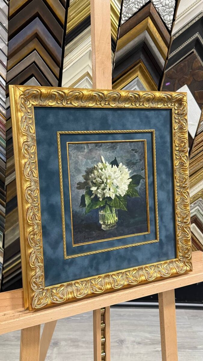 #багетнаямастерская #оформлениекартин #багетмосква #акварель #Андрияка #искусствовинтерьере #классическоеискусство #оформлениеакварели #бархат #золотойбагет #предметискусства