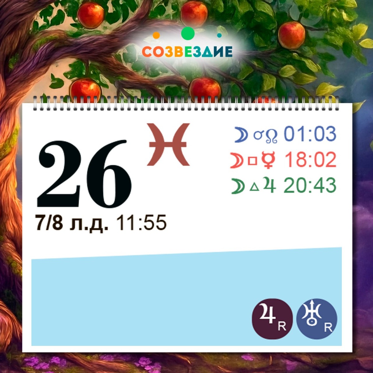 Сегодня реальность подкидывает нам ребусы. Луна в Рыбах делает квадрат к Меркурию (пик в 18:02 МСК). Это день «сломанного телефона»: слова кажутся слишком грубыми для тонких чувств. Не всё, что приходит в голову, нужно озвучивать.