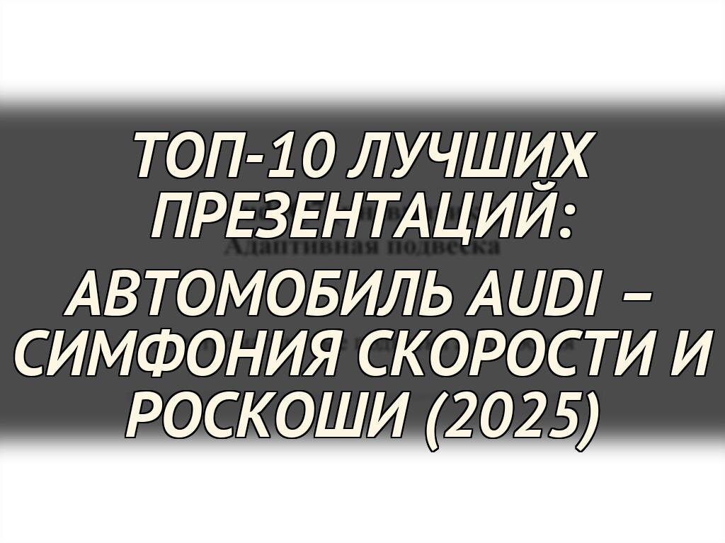 В этой статье мы собрали ТОП-10 лучших презентаций на тему Audi, где выделяем ключевые моменты, нововведения и визуальные эффекты, которые сделали их незабываемыми. От премьер на международных автосалонах до эксклюзивных онлайн-шоу, эти выступления не только представляют автомобили, но и погружают аудиторию в мир високотехнологичной роскоши, подчеркивая эволюцию бренда от традиционных внедорожников до лидеров электромобильной революции в 2025 году.