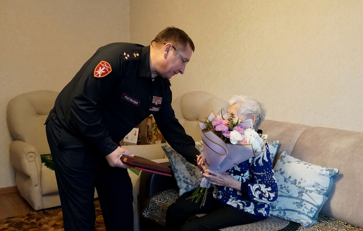 Со 100-летием ветерана Великой Отечественной войны поздравили росгвардейцы на Сахалине