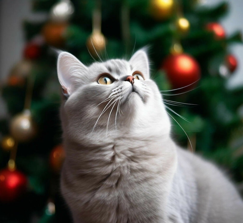 Кошка даже не шелохнулась. А Дымыч дернул ухом и хвостом — мол, не мешай — и продолжил созерцать новогодние человечьи забавы.