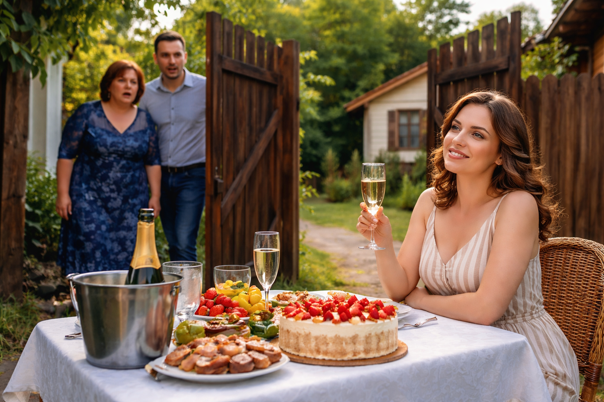 Ночью она спала спокойно. Без тревоги. Без чувства вины. Потому что впервые за долгое время сделала что-то не «как надо», а как правильно для себя. Утром она собрала деньги, аккуратно сложила их в пакет и поехала в райцентр. Купила торт, шампанское, простую еду, одноразовую посуду и скатерть. Вернулась и накрыла стол прямо во дворе, под старой яблоней. Не ради праздника — ради ясности. Она хотела, чтобы всё было видно сразу, без слов и объяснений.