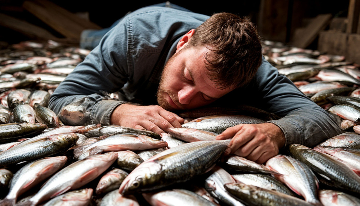 Немного переждав, Сашка с Вовкой вышли из-за кустов, и направились к лодке. Там они увидели тело этого мужика в куче рыбы. Лежал раскинув руки, как рыбий король на троне. Посмотрев на «трупака», они уже хотели уходить, но… его рука зашевелилась. Он потянул ладонь в голове. Пацаны переглянулись. Что делать? Вызывать ментов? Нет уж, не охота. Немного подумав, они вытащили этого мужика. Благо, он был не здоровый, обычного телосложения, килограммов на 65 веса.
