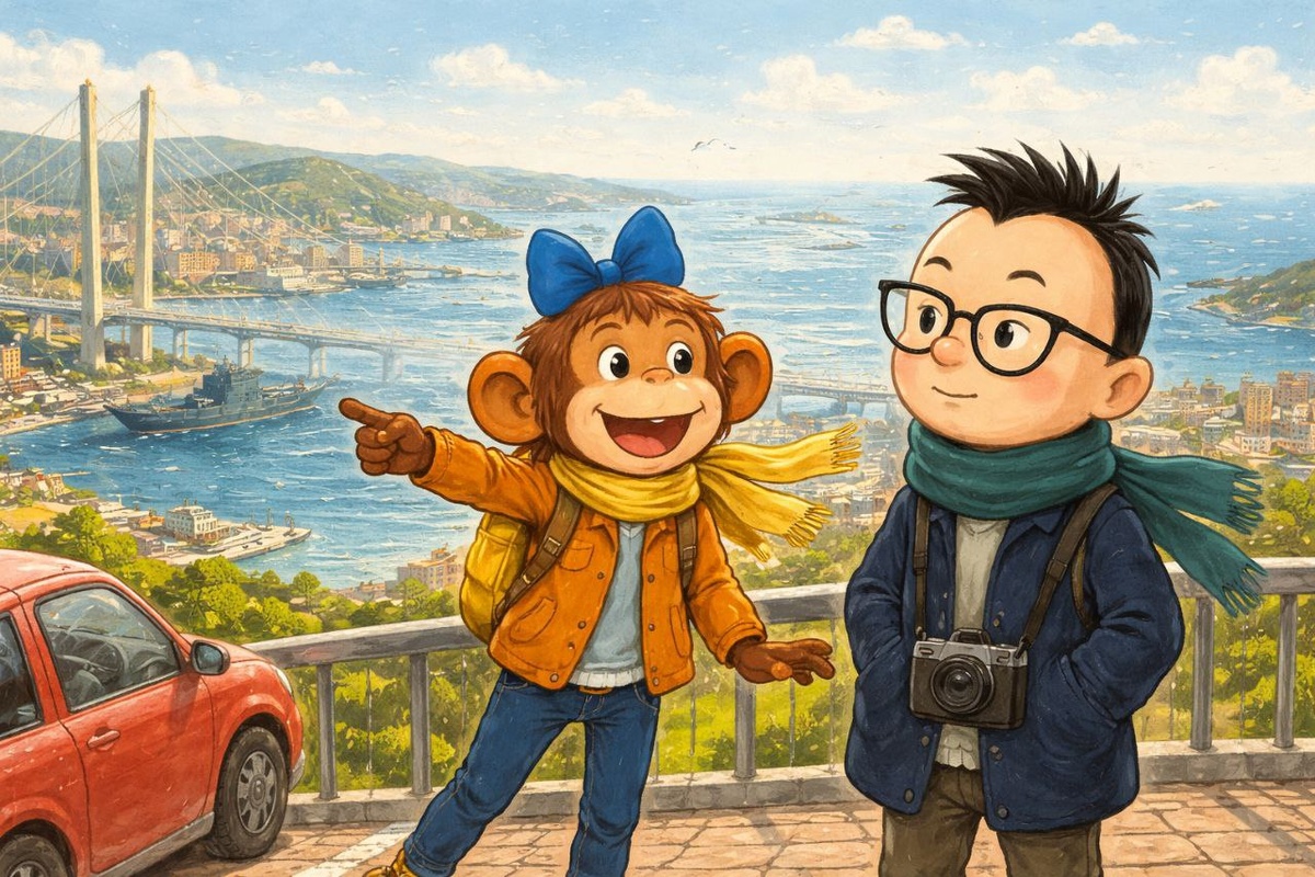 Владивосток. Неожиданно. Они выехали в зиму. А приехали - к морю. 🐒 Мартышка первая заметила странность: - Знайка... а почему декабрь пахнет солью, а не мандаринами? 🧠 Знайка медленно снял перчатки, посмотрел на календарь, потом на горизонт. - Это... статистически маловероятно. 🐒 - Зато красиво! радостно перебила Мартышка, уже стоя лицом к ветру. Море шумело так, будто Владивосток решил сразу всё объяснить: «Да, тут так. Привыкайте». ❄️ Снега нет. 🌬 Ветер есть. ☀️ Солнце светит, но не греет. 🧥 Тепло... и холодно одновременно. 🐒 Мартышка, подпрыгивая на набережной: - Это что за ощущение? 🧠 - Климатический парадокс, - вздохнул Знайка. - Одевайся слоями. И впечатления тоже слоями. Они поехали вверх - холмы Сихотэ-Алиня накатывались волнами, будто суша решила поиграть в океан. Дорога вилась, город оставался внизу, море появлялось то справа, то внезапно сразу везде. 🐒 - Сколько у нас времени, чтобы всё это увидеть? - спросила Мартышка неожиданно тихо. 🧠 Знайка замер, п
