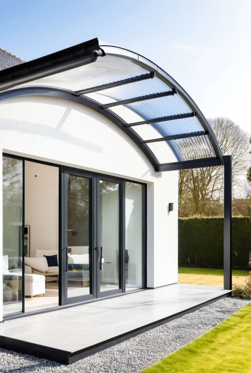 - Арочный: Изогнутая конструкция придает входу изящество и визуальную легкость, отлично подходит для современных архитектурных стилей.