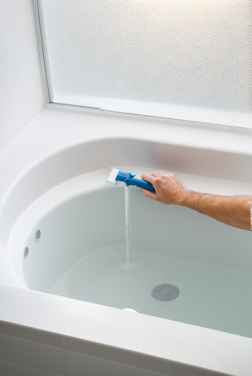 Завершающие работы: Герметизация стыков (силиконовый герметик), установка фурнитуры и финальная декоративная панель для пространства под ванной