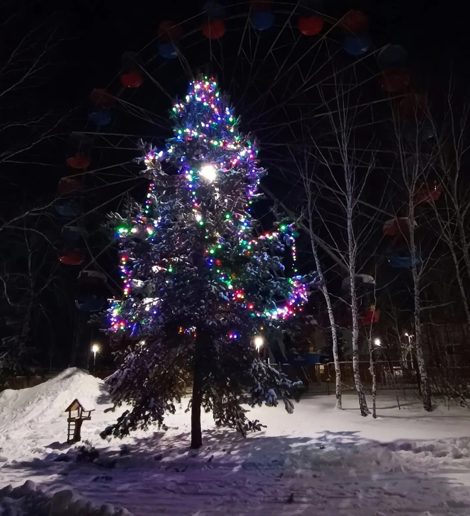 Особое внимание привлекает 10‑метровая елка возле Зимней деревеньки, украшенная гирляндами. Подарок городу сделал местный предприниматель Александр Халезин. Не осталась без внимания и беседка‑библиотека — ее украсил неизвестный житель города.