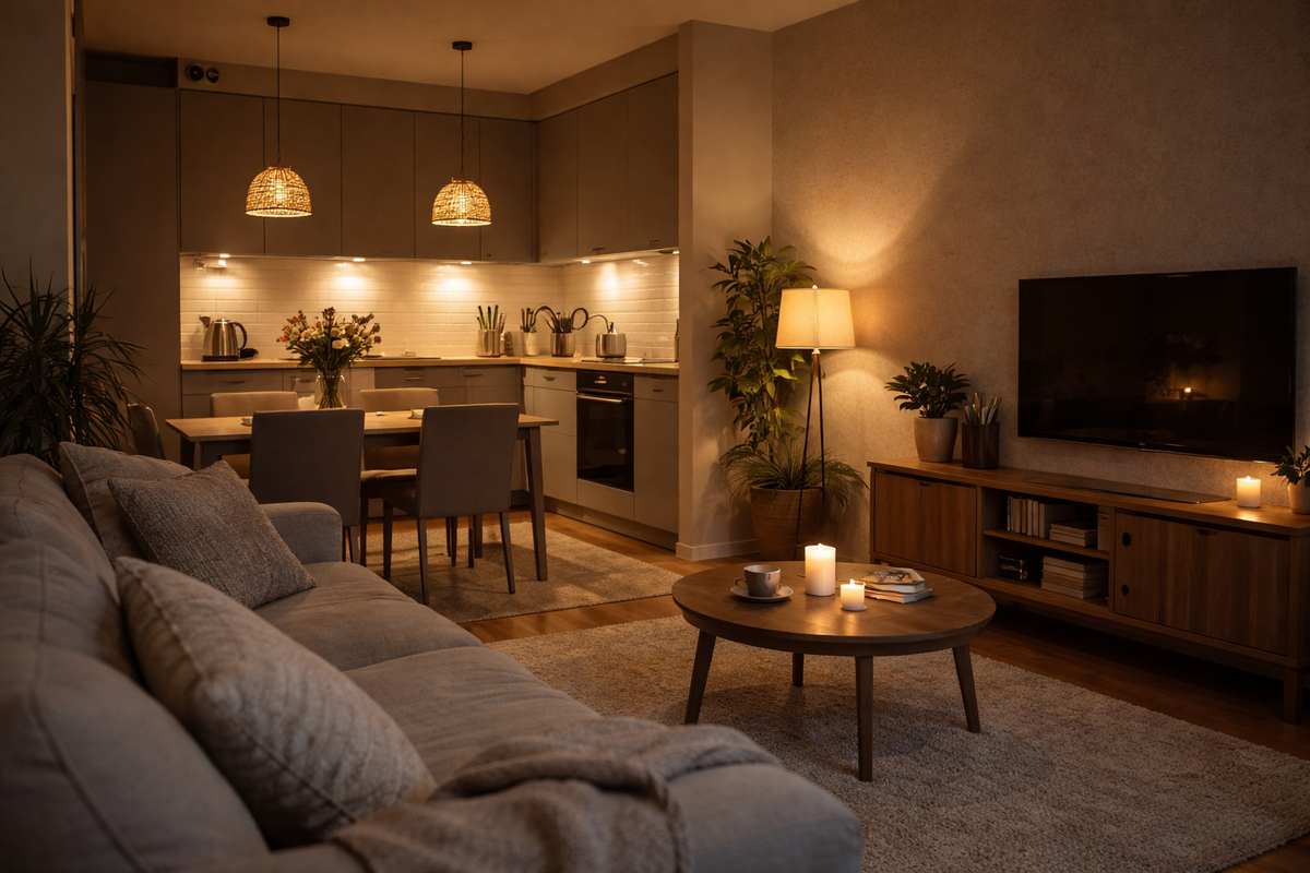 Свет включается мягко, не слепит. Климат возвращается в комфортный режим. Квартира «просыпается» вместе с человеком. Важно, чтобы этот сценарий работал всегда одинаково. Без сюрпризов. Противоположный, но не менее важный сценарий.