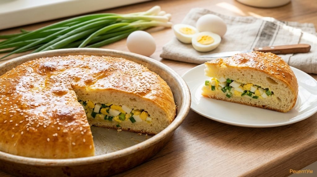 Пирог с зелёным луком и яйцом — тот самый случай, когда простые продукты превращаются в домашнюю выпечку «как у мамы»: питательную, ароматную и по-настоящему уютную за счёт зелени и яиц.