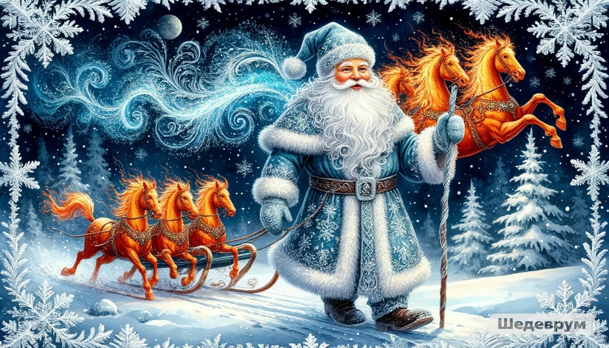 - Надо идти в ногу со временем! – наставительно поднял посох Новогодний работник, - какой год грядет? Правильно! Огненной лошади! Вот я и соответствую! А моя троечка пусть передохнет. Уж сколь веков меня катает, заслужила отпуск!