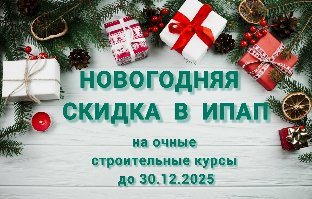 , хотим напомнить, что ИПАП дарит новогоднюю скидку на очные курсы строительного направления! До 30 декабря 2025 года успейте записаться на курсы по выгодной цене: 🔥 СКИДКА 50% на очные курсы: Сметное дело → vk.cc/cSwPrh Проектирование → vk.cc/cSNdjk 🎓 СКИДКА 30%: Профессиональная переподготовка «Сметное нормирование и ценообразование в строительстве» → vk.cc/cSwQ01 Важно: Скидка не действует на курс «Определение сметной стоимости работ по сохранению объектов культурного наследия. Архитектурная реставрация». 📲 Подробнее можно узнать по телефону 8 (800) 551-01-42 (Звонок бесплатный), +7 (812) 655-63-22, info@ipap.ru.