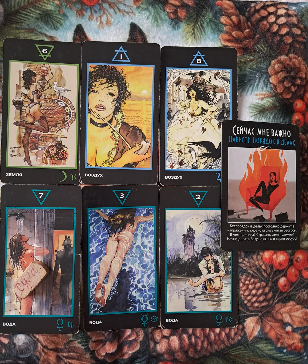 Расклад рисует месяц глубокой эмоциональной интеграции и важных разговоров. Вы будете балансировать между практической заботой (6 Земли), ментальной ясностью и общением (Туз и 8 Воздуха) и интенсивными чувствами (7 и 3 Воды). Итог и совет ведут к гармонии и партнерству (2 Воды). Месяц потребует от вас как уязвимости, так и смелости в выражениях.🎉
