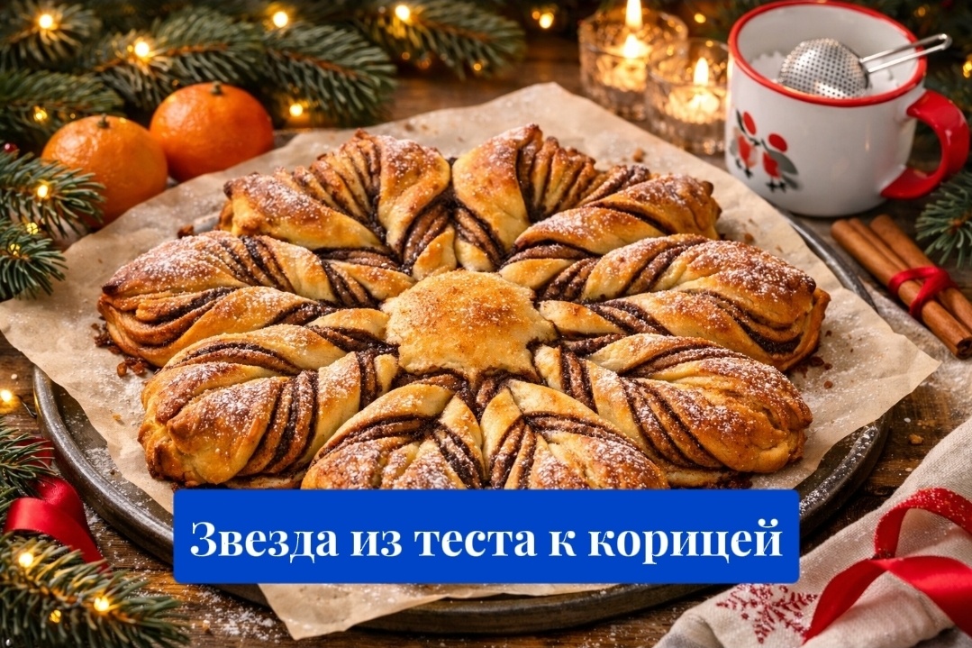 Есть выпечка, которая выглядит так, будто вы ночью тайно учились у французского пекаря, а на деле — это тесто, масло и корица. Я понимаю, мне это близко: хочется празднично, красиво, но без кулинарной Олимпиады. Этот звёздный хлеб — идеальный вариант: пока он печётся, дом пахнет Рождеством, а гости уже заглядывают в духовку как в камин. Для красоты (по желанию): яйцо для смазки + сахарная пудра. На 1 большую звезду (на противень 30–35 см): Как сделать тесто (сдобное, как на плюшки) Начинка “вкус Рождества” Смешайте сахар+корица(+соль) заранее — так посыпка ложится ровнее. Разделите тесто на 2–4 части (как хотите по слоистости). Раскатайте каждый в круг 25–30 см. Сверху слегка прижмите ладонями. Поставьте в центр стакан (ориентир), не прорезая центр. Сделайте сначала 4 надреза от края круга, затем каждый сектор делите ещё — в итоге получится 16 “лучей” (можно 12, но 16 красивее). Берите две соседние полоски, скручивайте их 2 раза наружу (каждую в свою сторону), затем соедините и защипни