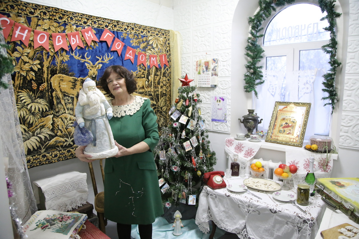 Энтузиаст Татьяна Бабина вновь подготовила эксклюзивную экспозицию в культурно-историческом центре «Арт-крыло На Троицкой». В этот раз--под названием «Новый год по-советски». На небольшом музейном пятачке гармонично размещены новогодние атрибуты из советской эпохи: колоритные фигурки Деда Мороза и Снегурочки, уникальные елочные игрушки, в числе которых початок кукурузы--знаменитой царицы полей в хрущевские времена. Впечатляют своей искренней простотой новогодние открытки. Миниатюрный баян-- как память Татьяны об отце Николае Ивановиче--знаменитом в городе и районе гармонисте, которого хорошо помнит старшее поколение. Здесь же бубен и трещотка для музыкального сопровождения. Стенд с советскими фотографиями подготовила еще одна энтузиастка Елена Субботина. Дополняют эпохальную картину старинные часы и настенный календарь. Все экспонаты из домашнего архива организатора выставки или подаренные ей друзьями. На праздничном столе--наливочка от бабы Насти, пельмени, соленые огурчики, чай в ст