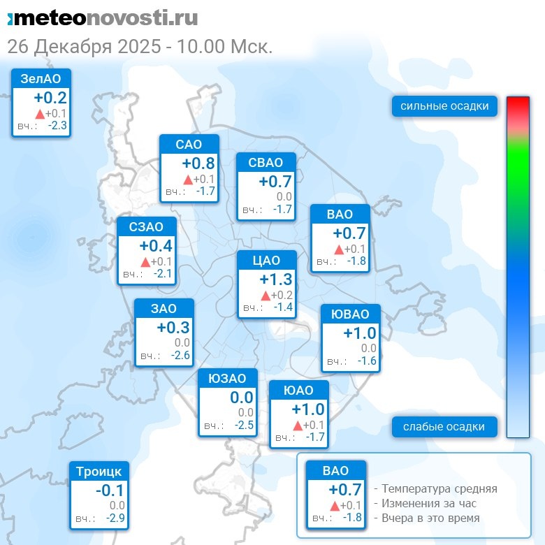 В 10:00 в Москве было от -0.4°C до +1.5°C, средняя температура +0.7°C #погода #Москва #зима #температура #26декабря #пятница