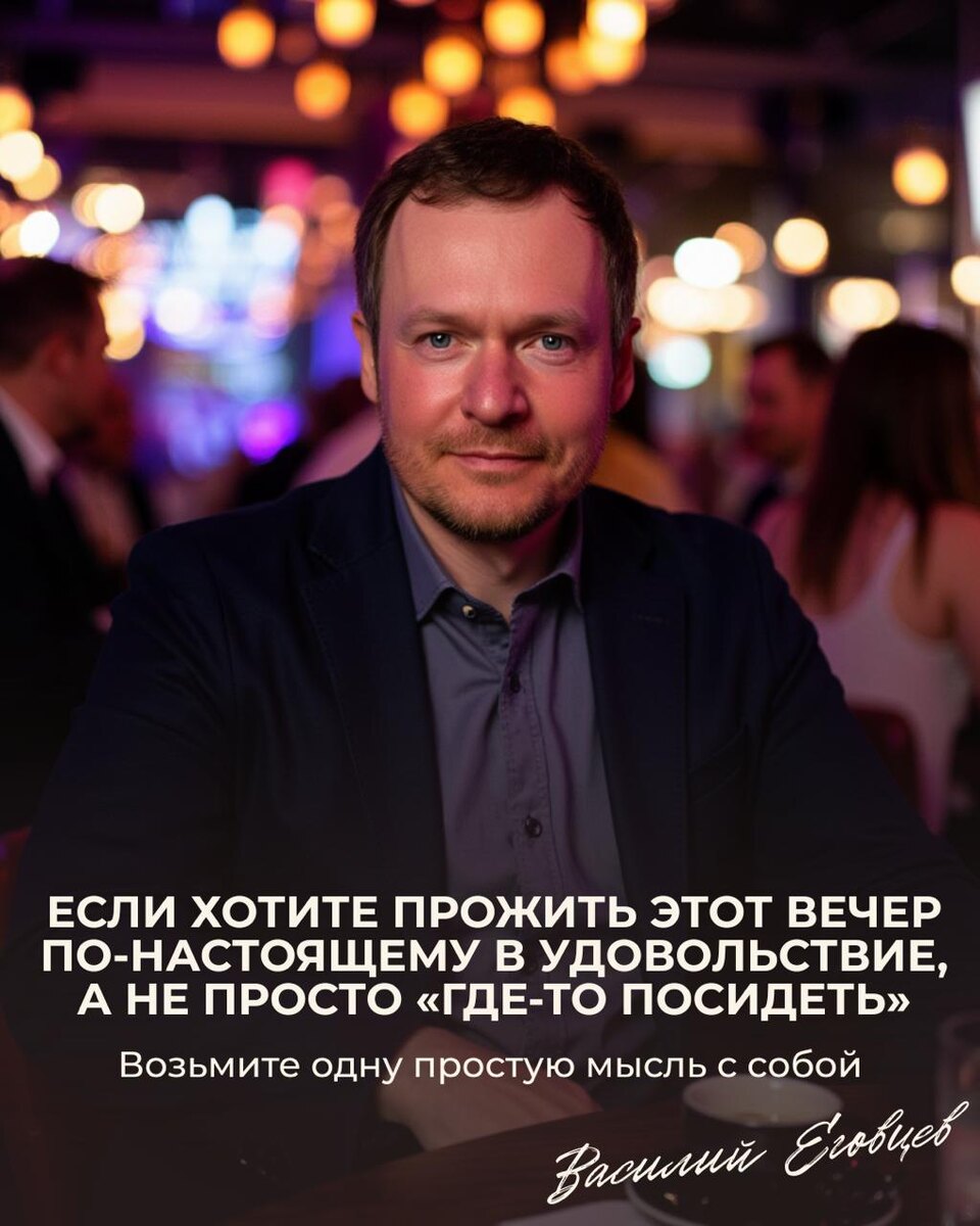 Если хотите прожить этот вечер по-настоящему в удовольствие, а не просто «где-то посидеть» — возьмите одну простую мысль с собой. Зайдите сегодня в любой бар. И если вдруг спросите бармена: «Кто из этих людей реально кайфует от жизни?» — он безошибочно покажет пальцем. И вы сразу увидите этого человека. Он не ждёт, чтобы его развлекли. Он сам себя развлекает. Точно так же и в отношениях. Если у вас есть любимый человек — попробуйте сегодня прийти к нему не за эмоциями, а с ними. И тогда этот вечер запомнится. Обнимаю вас. Хорошей пятницы.