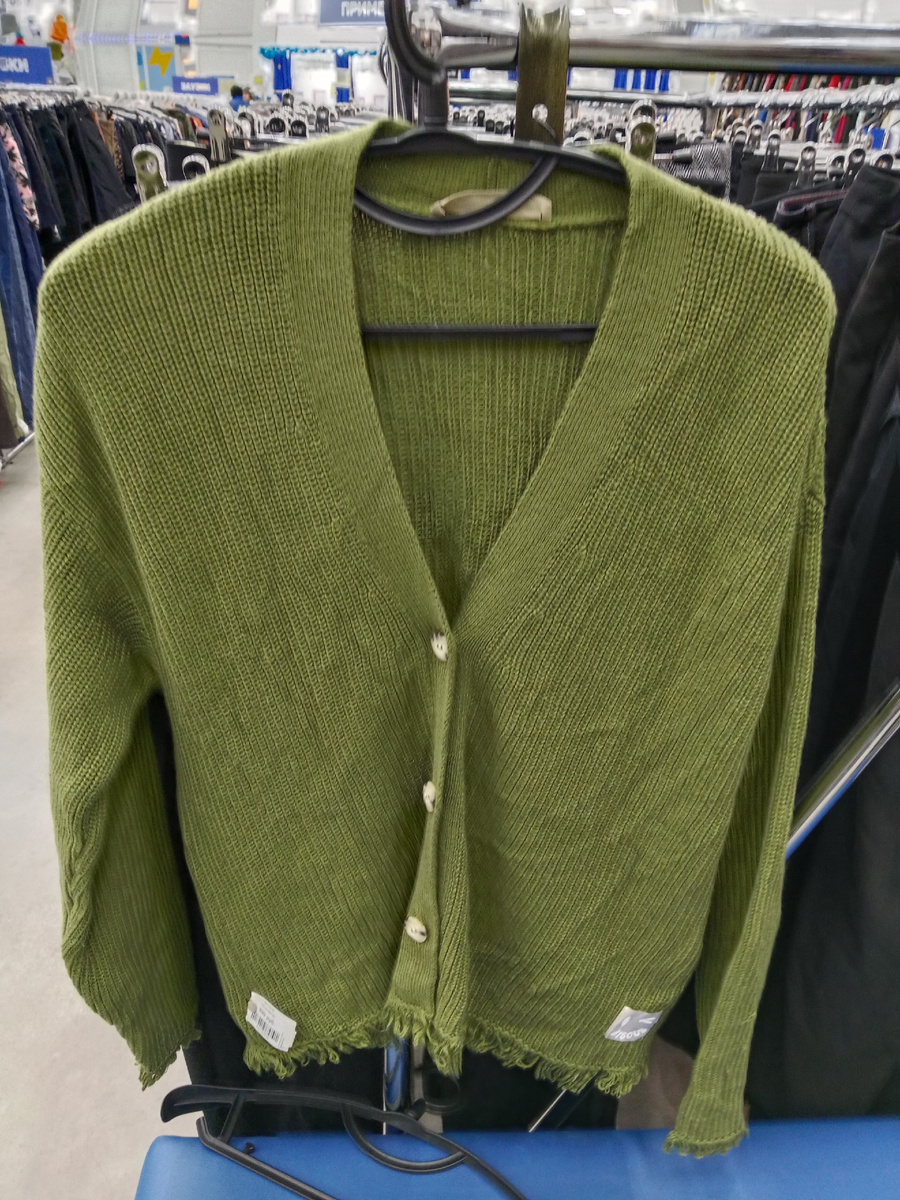Привлекла внимание , прежде всего, цветом такая кофта. Цвет радостно травянисто зелёный . Тянет на такие цвета посреди зимы.