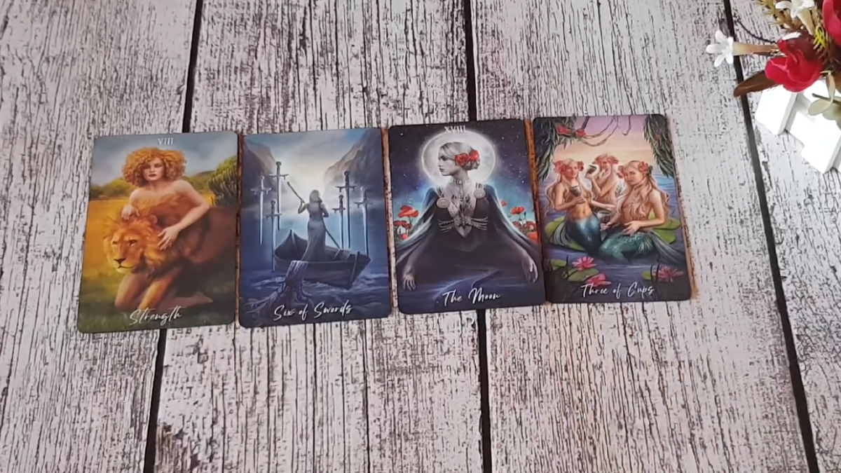 Итак, кто же к нам сегодня заявился? Сила. Да-да, Лёвушка, девочки, и не просто так себе Лёвушка, а в полном расцвете своей харизмы — командирский тип, постоянно в поездках, в делах, в «важных миссиях», с физической мощью, с моральной выправкой, с той самой аурой, которая сразу говорит: «Я — мужчина, и я веду». Он может быть из силовых структур, может быть военным, может быть просто тем, кто любит подавлять, доминировать, чувствовать, что всё под контролем. Шестёрка Мечей — он действительно в пути, он прокладывает дорогу, у него планов — как у кукушки яиц, он мечтает, строит, движется. Но — и вот тут самое важное — рядом с ним Луна и Тройка Кубков.
