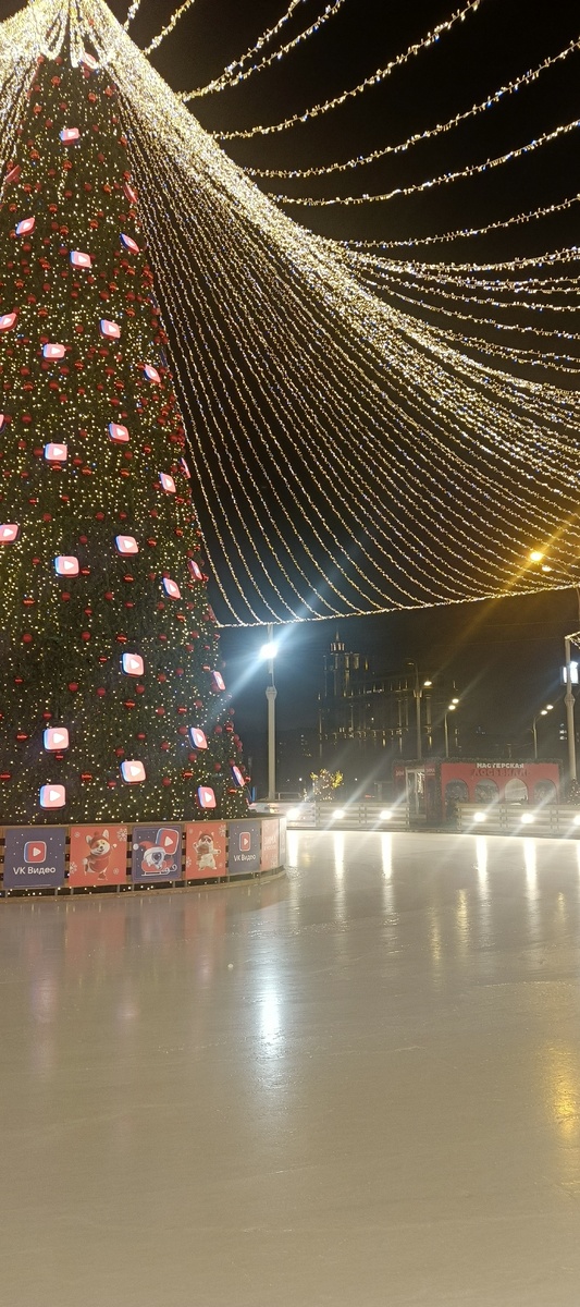 Каток маленький, но имеет по центру елку и теплую раздевалку "Рождественское
