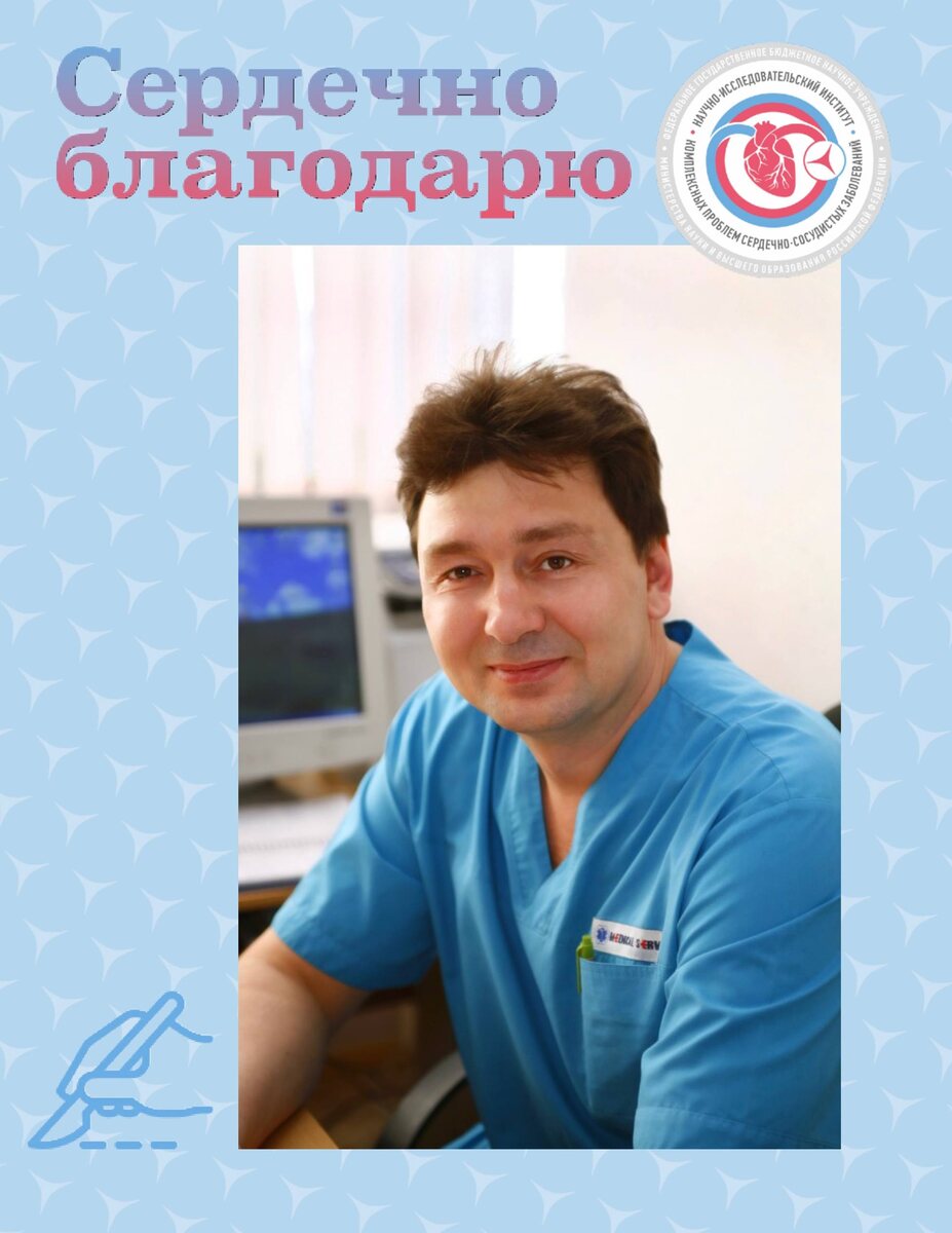 Спасибо нашим пациентам за тёплые слова! 📚 Сегодня в рубрике #сердечноблагодарю делимся отзывом о работе врача — сердечно-сосудистого хирурга Олега Чистюхина. ✏️ «Выражаю большую благодарность Чистюхину Олегу Михайловичу за его ювелирную работу, не только как хирурга, но и человека, который поддерживал меня во время моей первой операции на сердце. За его терпение, чуткость и понимание, а также ежедневный контроль состояния после операции. Большая благодарность младшему медицинском персоналу, которые создавали нам уют, чтобы мы чувствовали себя как дома». ✍ С большой благодарностью, Яна Красильникова, Кемерово 🫀 Будьте здоровы и читайте соцсети НИИ КПССЗ | Подписаться