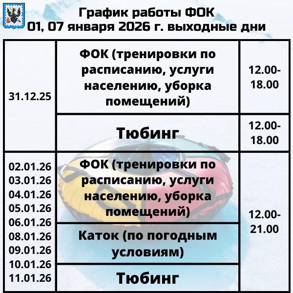 ❄️Друзья, ФОК представляет график работы в новогодние каникулы.