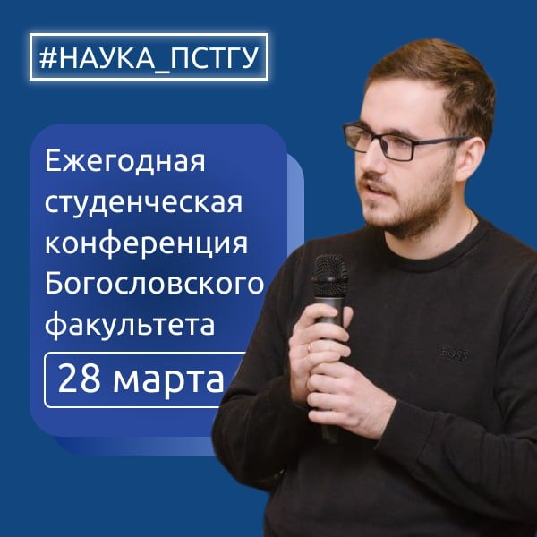 принять участие в Ежегодной студенческой конференции Богословского факультета Конференция предполагает работу в самых разнообразных тематических направлениях, в числе которых: систематическая теология, библеистика, патрология, древнехристианская письменность, литургика и литургическое богословие, каноническое право, общецерковная история, история Русской Православной Церкви, религиозная философия, философия религии, религиоведение, социальная работа, миссиология. ❗️Заявки принимаются до 31 января 🔗 Подробности Подписаться на ПСТГУ 👨🏫 Задать вопрос #Наука_ПСТГУ