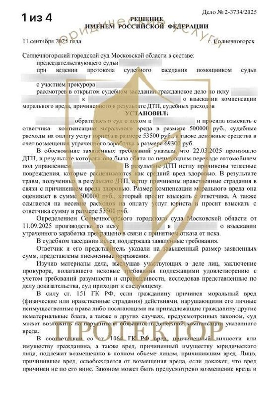 🚗 #Успешныйкейс Наша клиентка пострадала в аварии по вине другого водителя. Полученные травмы были расценены как вред здоровью средней тяжести. Мы подали иск и выиграли дело. Суд взыскал с виновника ДТП полную компенсацию: ✅ Возмещение вреда здоровью. ✅ Компенсацию морального вреда. ✅ Возмещение судебных расходов. Общая сумма взыскания: 165 000 рублей. Жизнь важнее денег, но справедливая компенсация — это необходимая мера ответственности и способ поддержать пострадавшего. Добились полного удовлетворения требований. Ваши права — наша защита. #Протектор #ДТП #ВозмещениеВреда #Компенсация #ЗащитаПрав