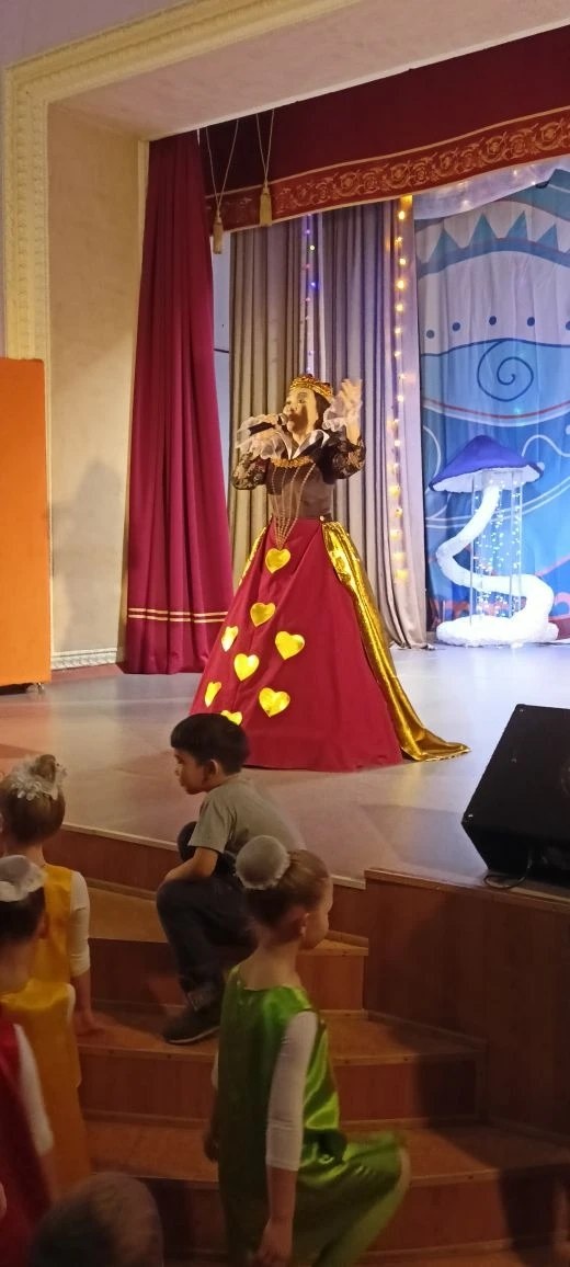 Ребята вместе с волшебником попали в сказочную Страну чудес и с нетерпением ждут прихода Деда Мороза. Но из-за перепутанного заклинания вместо Алисы к ним явилась злая Красная королева! Она погрузила всё во тьму и едва не испортила весь праздник. К счастью, волшебник и дети не растерялись и придумали, как всё исправить. Они дружно надули огромный шар, который стал для них новым солнышком и вернул свет в Страну чудес! ✨ Инф. и фото Звезда Алтая