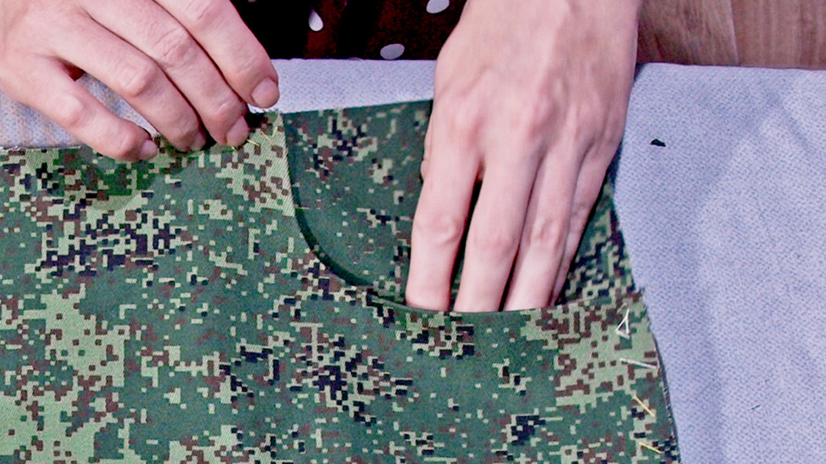 Карман с подрезным бочком – это практичное и простое в изготовлении решение, которое часто применяется в поясных изделиях. Форма кармана может варьироваться от прямой до скругленной или фигурной. Рассмотрим обработку скругленного варианта, который, по опыту, меньше подвержен оттопыриванию и деформации в процессе носки. При изготовлении юбки или брюк, карманы с подрезным бочком обрабатываются в самом начале, после стачивания вытачек и до соединения боковых швов и верхнего среза. Мешковину кармана можно выкроить из основной ткани, если она достаточно тонкая. Однако для более аккуратного вида рекомендуется использовать тонкую подкладочную ткань. Например, батист для тонких хлопковых материалов или подкладочную ткань для других видов тканей. Бочок кармана обычно выкраивается из основной ткани. Если ткань плотная или её недостаточно, бочок можно сделать составным, добавив подзор – видимую внутреннюю часть кармана из основной ткани, которая закрывает мешковину с лицевой стороны изделия. Для