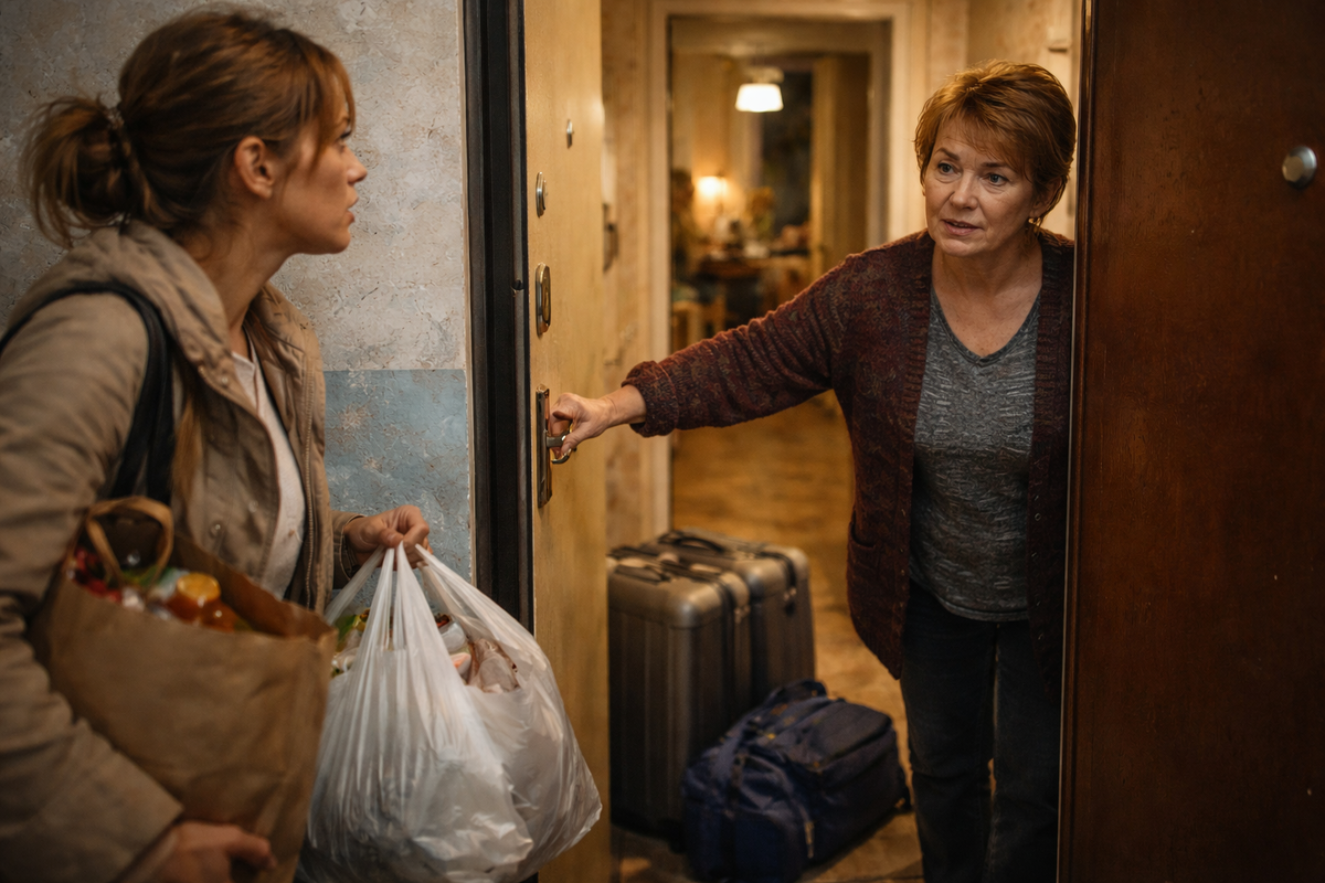 Она открыла дверь шире. И я увидела. Два чемодана. Мой серый, с оторванной ручкой, и спортивную сумку, которую я брала в фитнес. Всё стояло аккуратно, даже слишком, как на вокзале.