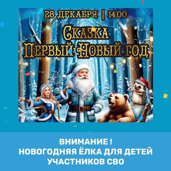 " 🎄 28 декабря в 14:00 приглашаем детей участников специальной военной операции на праздничное мероприятие! 🎉 🎉 Программа: весёлые игры, конкурсы, подарки и, конечно же, встреча с Дедом Морозом и Снегурочкой! 🎟 Билеты: можно получить в кассе КДЦ. 📅 Режим работы кассы: вторник — суббота с 14:00 до 18:00. #СВО_Чусовой@glavachus
