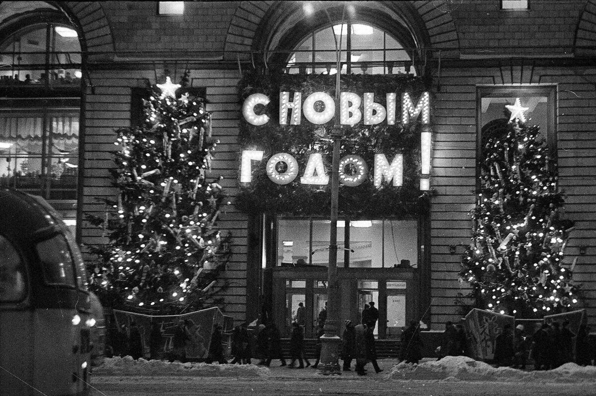 Сейчас трудно представить новогоднюю Москву без огней, световых арок на Тверской, сияющих катков, инсталляций и гирлянд на каждом бульваре. Но еще не так давно, новогодняя иллюминация в столице была редкостью и настоящим событием. Новогоднее сияние Москва увидела после войны, в 1950‑е. Тогда на Тверской впервые вывесили простые лампочки в виде звезд и снежинок, а у ГУМа установили огромную елку с электрическими гирляндами. Москвичи собирались семьями, чтобы просто посмотреть на огни. «Мы ехали смотреть огни. Не магазины, не ёлку – именно огни. Казалось, что от них теплее и на улице, и дома». В 1969-м над ГУМом зажглась «С Новым годом, Москва!» из газовых трубок. 1970-е–1980-е Тверская (улица Горького) стала световым проспектом: неоновые звёзды, цифры года, панно с Кремлём и салютами. Появились неоновые панели, первые объемные конструкции — звезды, цифры, силуэты Кремля. Каждый год перед Новым годом здание Моссовета и гостиница «Москва» превращались в светящиеся декорации. К 1980-м