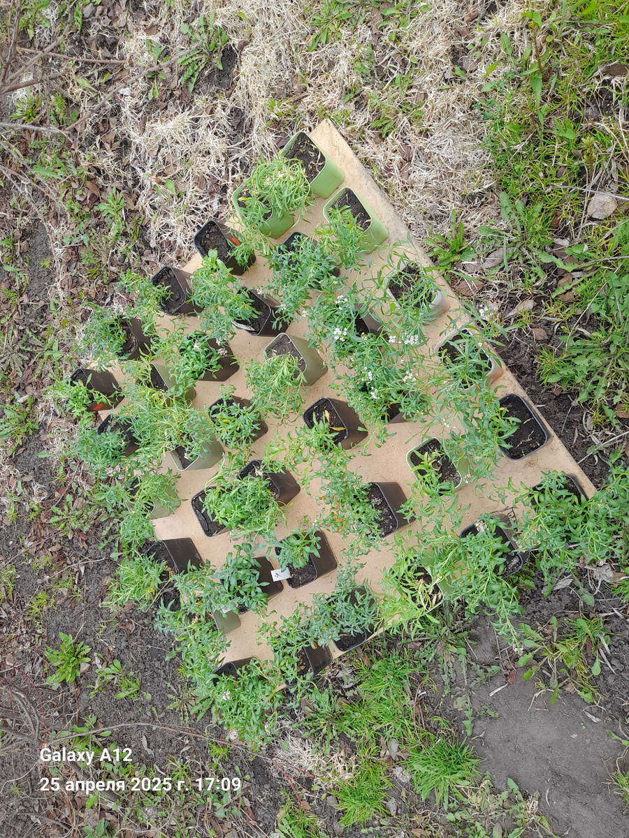 Заключительная статья про вегетативный алиссум . Придумать что то новое про выращивание этого простейшего в уходе растения довольно трудно , поэтому очередное подведение итогов и на этом про алиссум всё . В прошлой статье рассказ о " зимнем " черенковании алиссума , в этой статье подборка фотографий , что в итоге получилось . После переезда рассады алиссума на дачу , начинаем рассаживать алиссума на ПМЖ или переваливание в больший объем , все зависит у кого какие условия , при наличии теплицы - сразу в вазоны на ПМЖ , если нет теплицы можно перевалить в больший объем ( для сорта Сноу Принцесс обязательно ) . Прошлая весна была аномально теплая , не было ни одного заморозка , поэтому алиссум высаживался сразу на ПМЖ . На фото ниже рассада алиссума после переезда на дачу . . В этом сезоне в многоярусное кашпо первый раз посадил сорт Easy Breezy Pink , до этого в многоярусное кашпо четыре года сажал сорт Алиссум лавандовый ( Stream Lavender ) , думаю стрим лавандовый намного лу