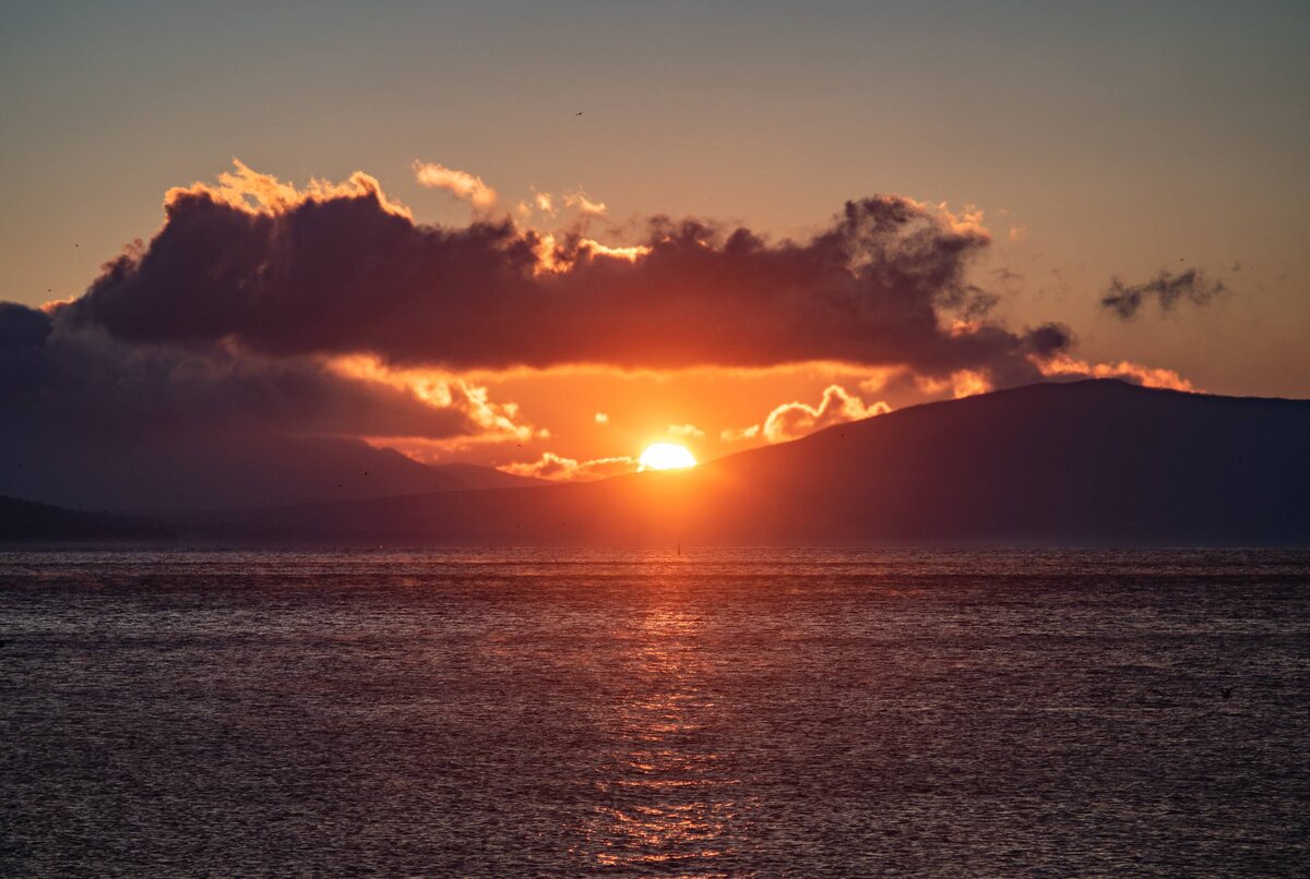 Сегодняшний холодный рассвет и парение моря при температуре минус пять