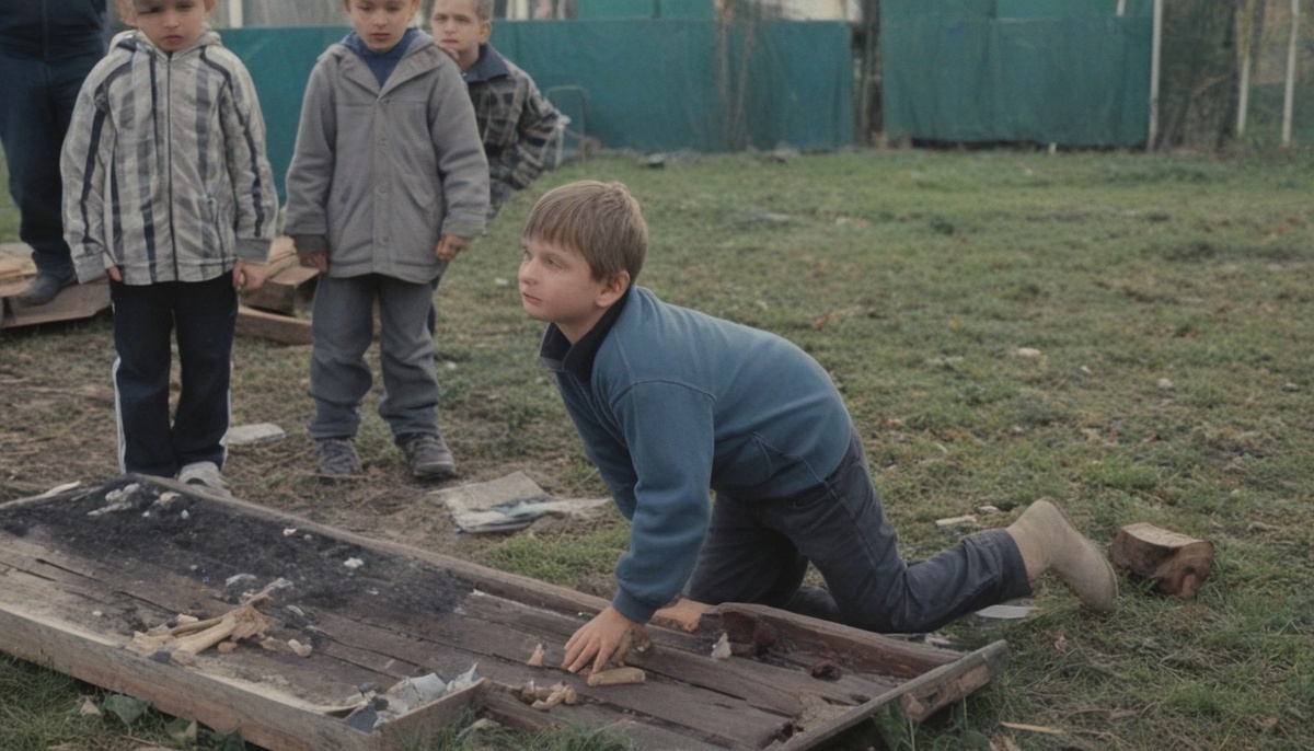 Андрюха копался в старых досках, пытаясь выровнять их под крики галдящих во дворе пацанов. "Андрюха, выходи! Мы в футбол идем!", но он лишь отмахивался, не поднимая головы. Отец, неторопливо затягиваясь "Беломором", наблюдал за его потугами. Дым медленно рассеивался в вечернем воздухе, а вместе с ним улетучивались и мои мальчишеские представления о веселье.